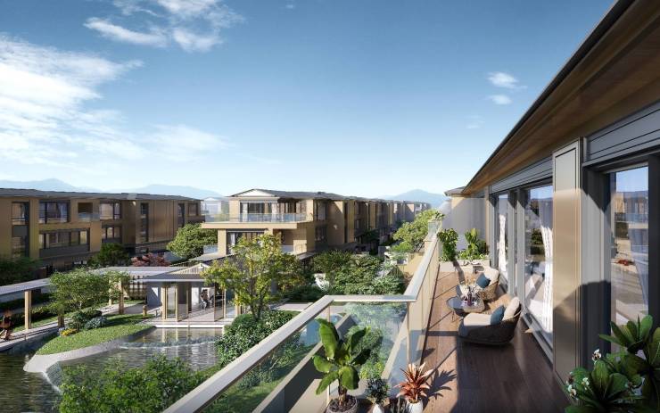 映鉴世界的美学观:私家院落以梁柱结构退让,延续中式建筑里的线条感,让建筑“隐身”,让山水与生活无界交融;在整体现代风格中适当融入禅意美学,定义出领衔时代的合院产品。
