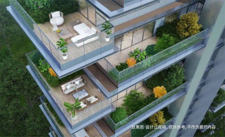 室内阳台采用错层设计,使每个户型都标配了6米挑高的空中花园。