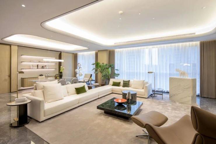 建筑面积约320㎡的4房4卫2厅设计,拥有专属入户电梯及专属独立门厅,业主私密性和安全感得到最大程度保障。结合高达约82%得房率的优势,整体专享私域空间更具高定和纯粹。为符合疫情常态化的生活需求,项目特配置只需语音即可联动的,智能家居控制系统和消毒系统。