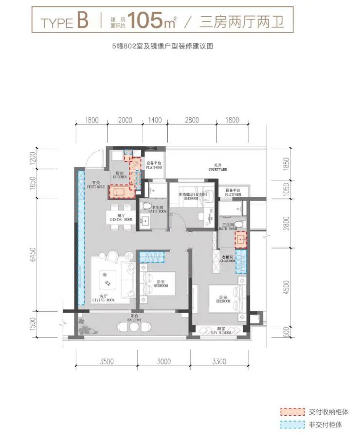建面约105方户型图示意