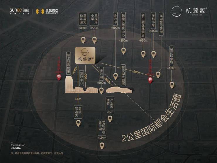 步出杭臻源,直线距离约600米处便是目前杭州最大的人工湖,有着网红“小三亚”之称的金沙湖公园(在建),实地体验感很不错,内部规划了特色樱花大道、环湖漫步跑道、主题乐园等,本项目业主入住时可享受金沙湖公园的休闲配套,国际湖滨生活已初具规模。