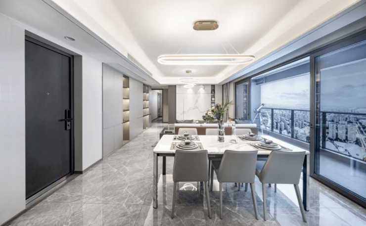 建面约142㎡改善大四房,采用大尺度边厅设计,进一步放大了阳光平权的优势;270°环景视野,提升居家无界的生活质感;南向三卧室+约6.6米边厅观景大阳台,与客餐厅无缝对接,让家人在餐饮娱乐之余,观赏窗外美景,尽揽四季风景。