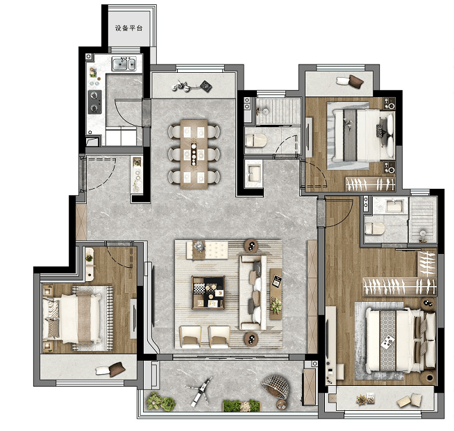 当下市面常规豪宅得房率、利用率是一大痛点,高层普遍约75%,超高层约72%。而国锐·雲熙13#洋房,建筑面积约119m²,得房率高达约86%,明显比同面积户型更舒适。