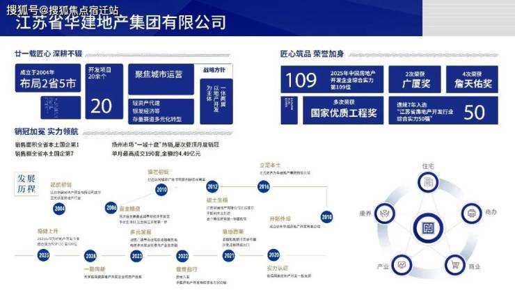 华建地产成立于2004年,专注房产开发21年。自成立以来始终秉持“精工品质,精致服务”的管理理念,构建起住宅、商业、商办、产业等综合发展的横向生态链。截至目前,华建地产在扬州、盐城、徐州、广安、成都两省五市独资、控股、参股开发了20+口碑项目,开发面积逾500万㎡。