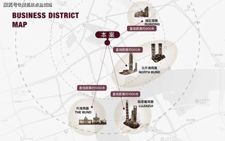 在商业配套方面,外滩樾同样表现出色。项目约2公里内构筑了多元繁华的商业圈,北外滩商圈直线距离约500米,外滩商圈直线距离约1000米,陆家嘴商圈直线距离约1500米,瑞虹商圈直线距离约900米。这些商圈内包含了众多高端购物中心、美食餐厅和文化场所,为居民提供了丰富的购物和娱乐选择。
