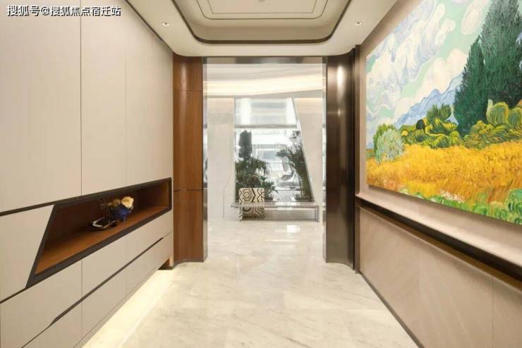 出了电梯,便是超过约10㎡的私享电梯厅,以意大利卡拉拉白大理石开场,静谧端庄,犹如博物馆的序厅。