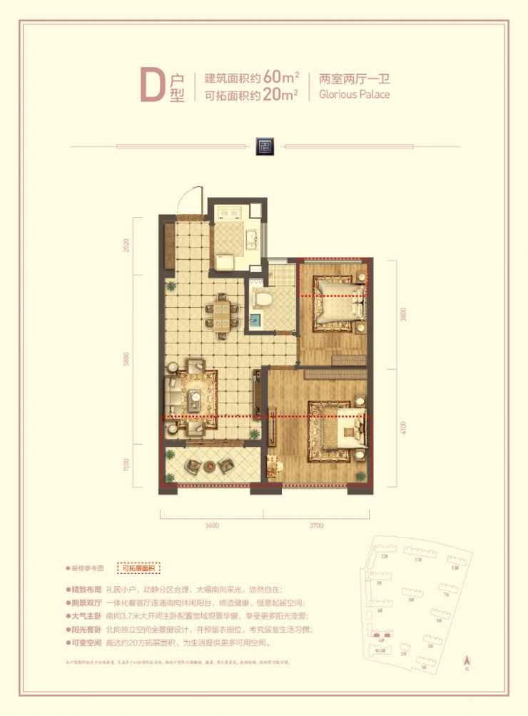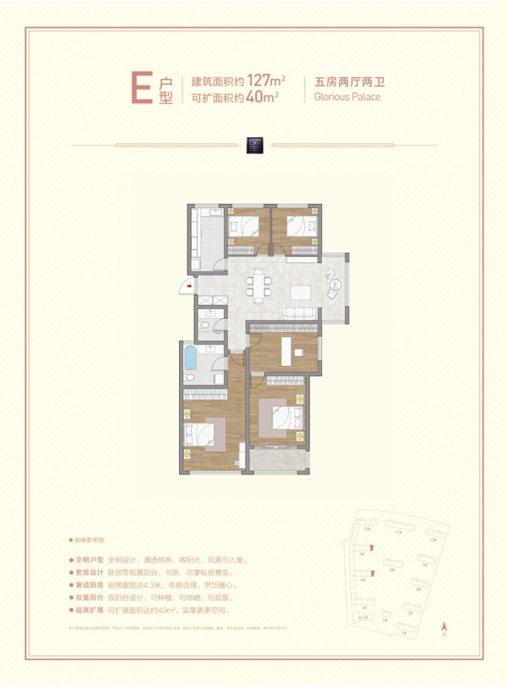 除此之外,89方户型还额外赠送32㎡的使用面积,127方户型赠送40㎡,60方户型更是赠送20㎡,给业主带来更多的生活空间。