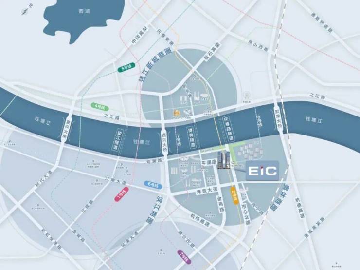 EIC一共7幢楼围合成一个约百米楼间距的超大园区,12万方自持运营,将引入10家中概股、20家上市公司,30家新金融公司,40家互联网头部企业,超5000位高层次人次,大平层圈层大多是海归、华侨、浙商、二代,尤其是欧美留学经验的年轻人非常喜欢,有着2000-3000万的豪宅购买力,因此未来商业的消费能力强劲。况且还在奥体核心区,一路之隔就是国际博览中心,无论是地铁人流、办公人流还是住宅人流,都是商铺的强有力支撑。