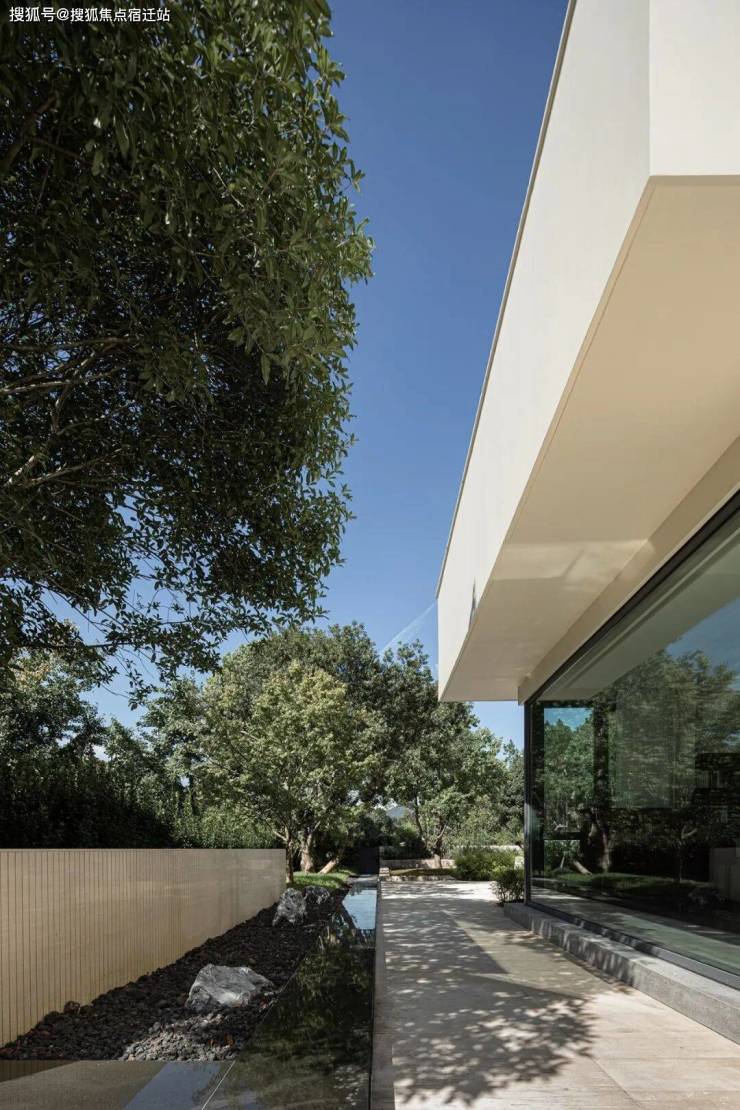 庭院内延伸出一条石砖小道,铺设出道道层次感,仿佛是一幅抽象的山水画作,展现自然流动的诗意。