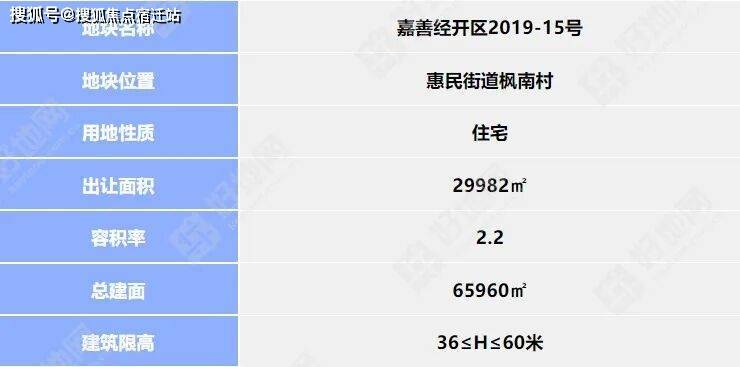 好地网了解到,板块有1宗宅地待推,嘉善经开区2019-15号地块,规划出让面积约45亩,容积率2.2,总体量约6.6万方。