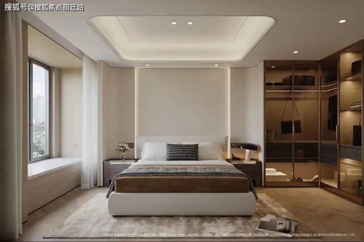 在卧室区域,每个房间均配备了宽敞的飘窗+大约270度的弧形转角阳台,实现了空间的高效运用和提供了广阔的视野。