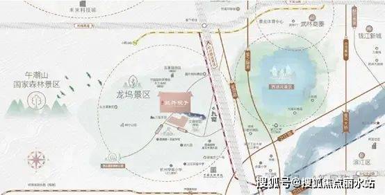 关于交通设施,地铁12号线已于2022年底获得批准建设,起点设美术学院象山站,终点为杭州西站。规划中的线路将设有龙坞站,与项目仅相距约200米。乘客可以通过这条线路快速换乘至其他公共交通工具,预计未来从龙坞出发前往未来科技城或滨江等重要产业聚集区只需大约20分钟车程,极大地提升了该地区居民的出行便利性。