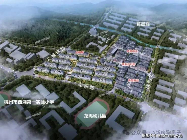 在生活配套方面,规划中包含了一条休闲步行街,且龙坞茶镇·九街商业街近在咫尺,为居民提供了便捷的购物和消费场所。教育资源也非常丰富,龙坞幼儿园(在建)与西湖第一实验学校(涵盖中小学)均位于附近,日常接送仅需步行即可完成。