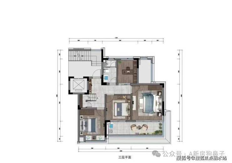 三层主要为卧室区域,四层为客厅。整体结构包括四室两厅两卫,拥有L形超大阳台,提供270度通透采光。