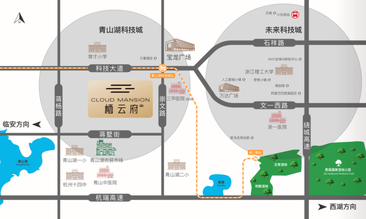 同时,也可以通过科技大道快速路,一线联通杭州主城区,更加便捷的通勤路。