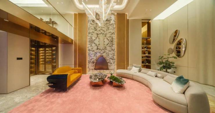 约5.8米轩朗地下空间,自然采光通风,飞瀑之下,盛放百般意趣。