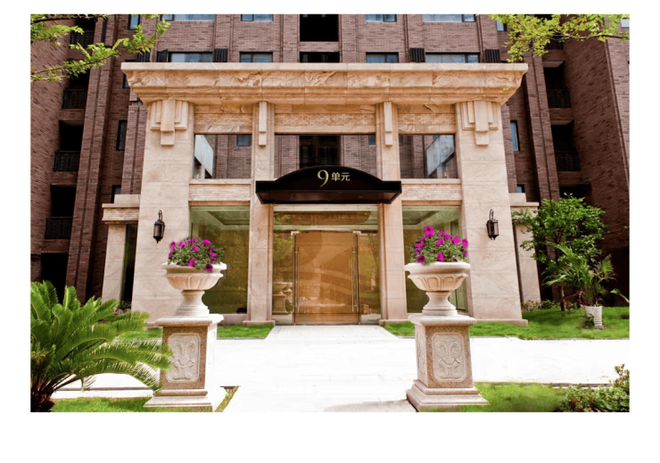 5.建筑:超大栋距规划,ART-DECO建筑风格,一堂两厅豪华入户,暖色劈开砖立面