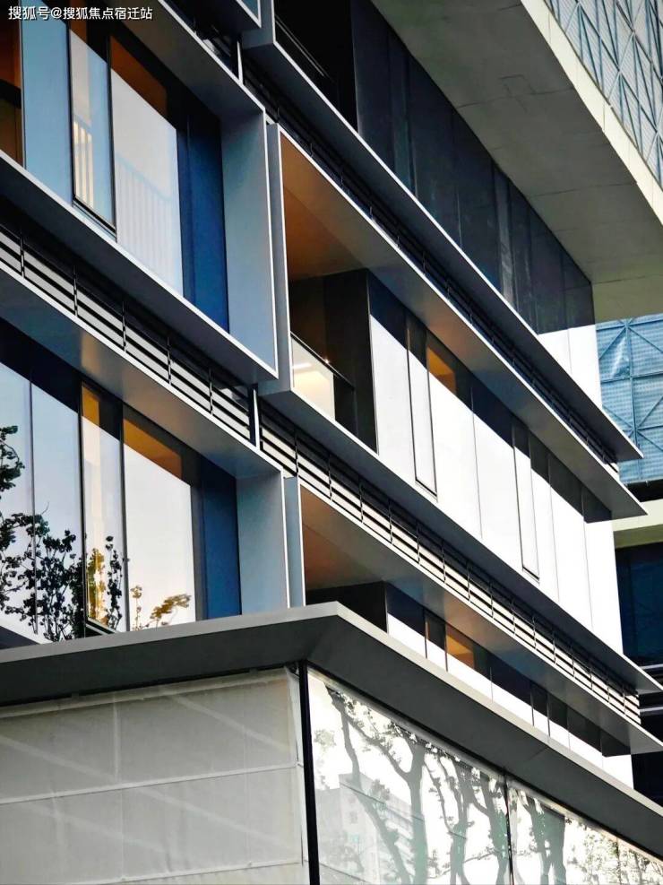 高层建筑立面采用铝板、玻璃和石材等材质的组合,层间线条选用了专属烧制的均釉陶砖。