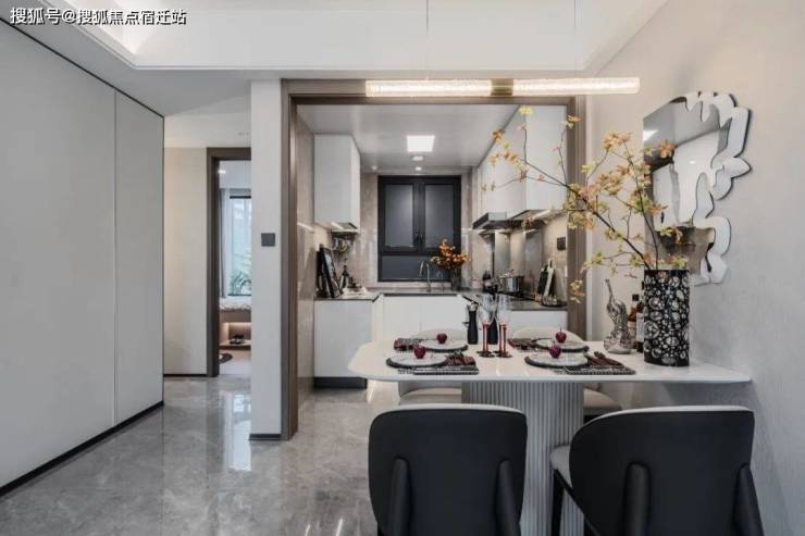 客餐厅的颜值超高,地砖、墙布都在交付标准里,整体风格更为统一,将好看+好用发挥到了极致!