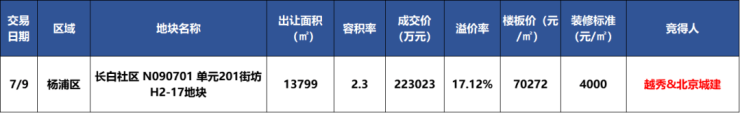 在上海的房地产市场上,又一颗璀璨的明星即将升起!7月9日的上海第三批次土拍中,北京城建与越秀地产组成的联合体以22.3 亿元的高价成功竞得杨浦区长白社区的H2-17地块,这一消息犹如一颗重磅炸弹,在地产界引起了巨大的轰动。