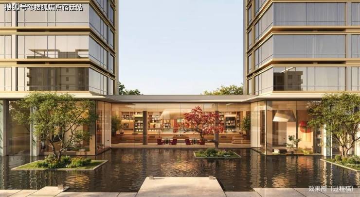 溯源曼谷嘉佩乐酒店和纽约安缦酒店灵感,打造“水上”迎宾通道,约100米超尺度城市界面,进深约36米的镜面大水景;借鉴新加坡Parkroyal on Pickering的垂直绿化形式,打造悬浮绿洲;以更立体的设计手法,构建城市浮岛的超级入口。
