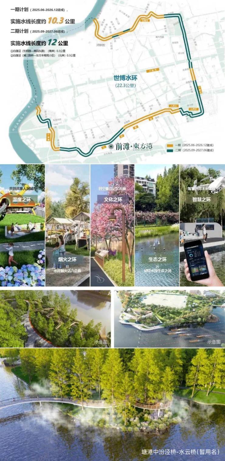 浦东正通过约22.3公里的世博水环,打造"烟火之环、文化之环、生态之环",串联前滩、三林等热门板块,与黄浦江衔接成“O”字环形。本案北邻世博水环生态步道,占据“阳光三林”和“林浦莺飞”双景点。未来沿水将形成主题化、特色化功能的有机聚合,催生新一代国际滨水生活