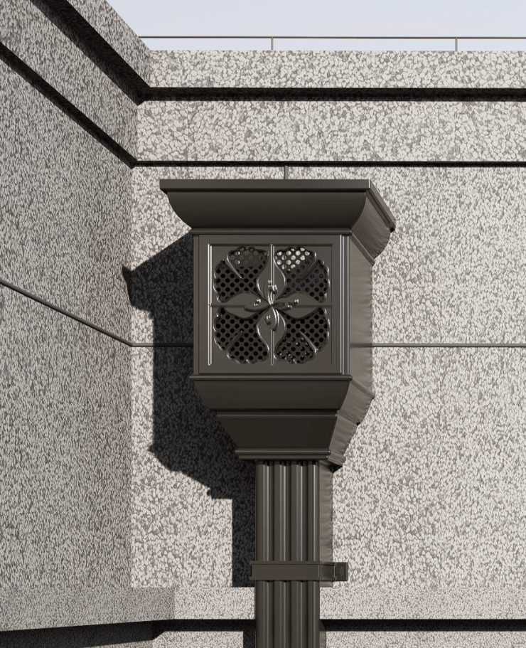 翠湖天地六和没有照搬历史,而是将现代工艺隐藏于风貌之中,原创溢流口雨水斗设计、牛腿消隐雨水管、仿瓦百叶消隐设备等细节,这些能真实影响居住却不流露在外的设计也只有翠湖在做。