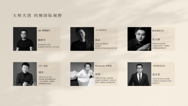 聚集享誉业界的团队——gad杰地设计、31.DESIGN、GVL怡境、德森建筑设计、NNS纳沃设计、Bluemoon布鲁盟,
