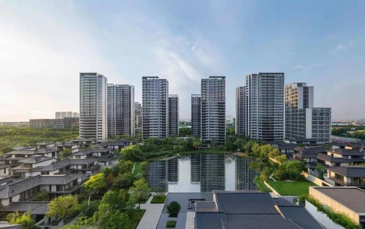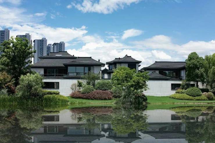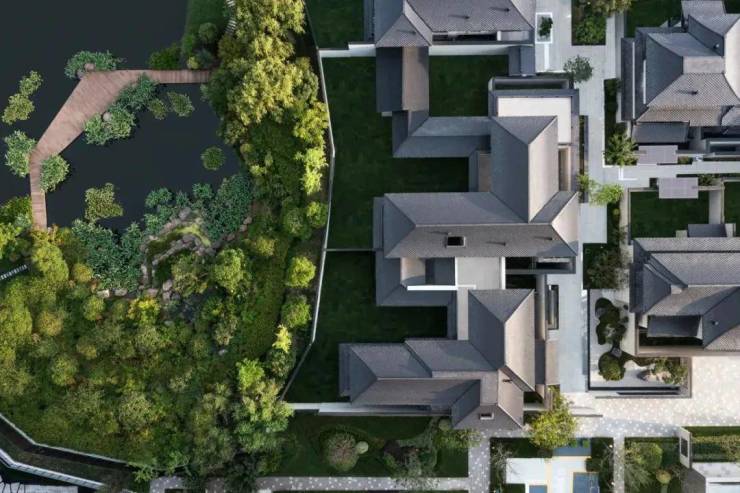 以唐代建筑、苏州园林为蓝本,并取境国际极简趋势,沿着约5000方清风湖,错落有致地布局62座合院,让建筑与湖、自然无界交融,营造出“园中之园”的境界。