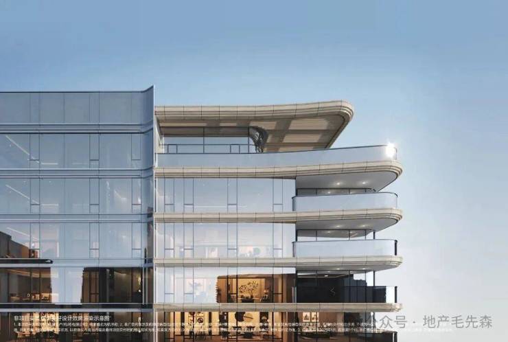 南北两侧立面均是超高的窗墙比,并配以大面落地玻璃。层间线条则是铝材和石材的点缀结合,使用了大量的曲面弧形石材。用的还是跟合肥招商玺同款的「双曲倒弧工艺」,成本非常高。