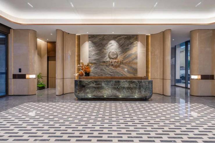 此外,项目还将社区的西大门打造成酒店式环岛落客式大门,以同样的规格打造人行的东大门,大门两侧都选用奢石,社区内还设计有归家大堂,这样的归家仪式感在整个上海约450万级的新房中十分少见。