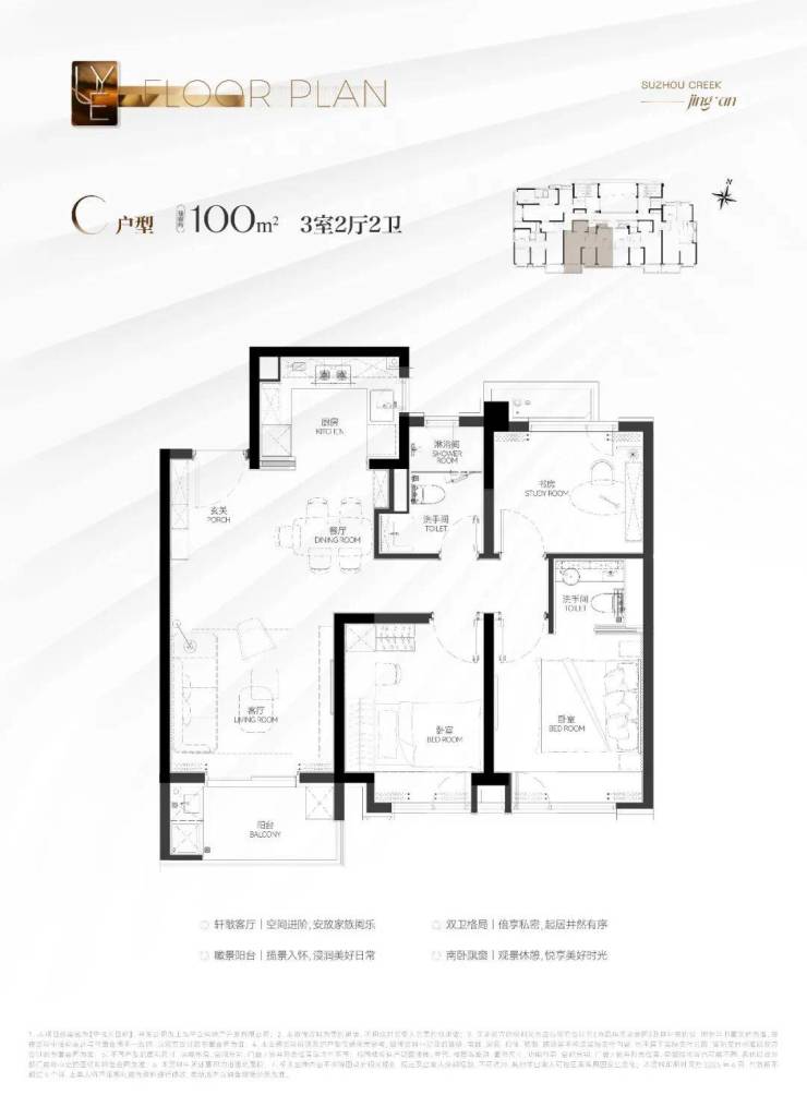 主力户型为建面约88㎡2房和建面约100㎡3房