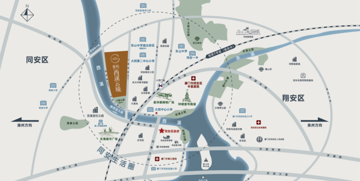 项目位于同安老城区城北片区,大溪地西侧,规划有多栋高层住宅、小高层、叠墅,规划用户1255,车位数1344,户型涵盖建面约83-122m²产品。象屿西溪云境所处的板块,区域内整体配套成熟度还可以,汇集了大同第二中心小学、东山中学城北校区(规划中)、同安中医院、厦门市第三医院、地铁9号线、BRT快2 /快5线等配置,可满足大家各方面的需求,未来随着老城区的北扩,板块价值将不断提升。