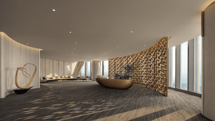 杭州世茂智慧之门项目总建筑面积达370,000平方米,共由5栋建筑组成,涵盖办公、公寓、商业及城市公园等多业态功能。其中,A、B两座超高层办公塔楼是综合体的核心;C、D、E附楼作为居住、商业及社区服务配套,扩展空间以配合完善项目的整体运营。