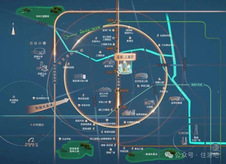 直距西湖科技园2公里、浙大网新软件园3公里、阿里云谷仅约4.9公里,依托城西科创大走廊的战略赋能;