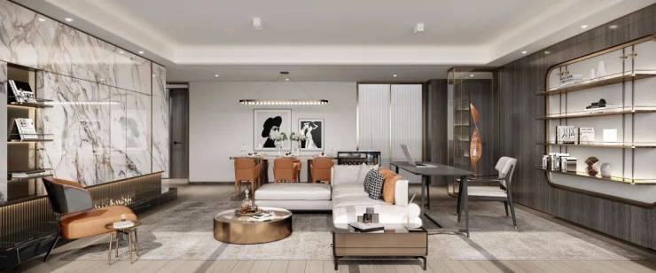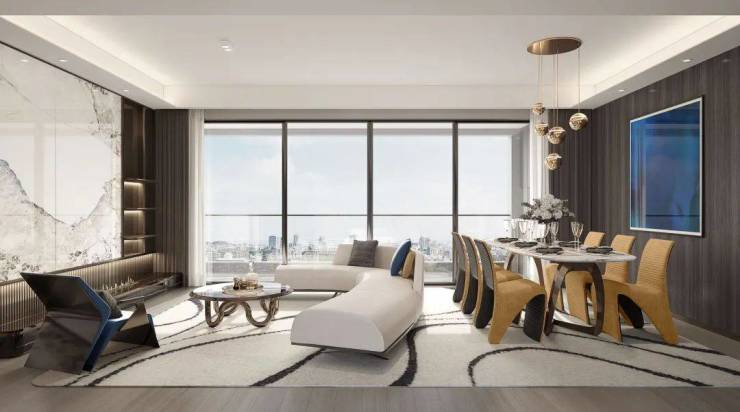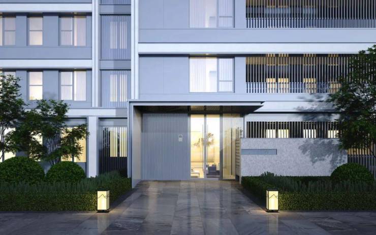 以现代极简美学为统领,增添铝型材与仿石涂料的使用,勾勒轻盈的体态和细节。精巧的立面风格搭配大面积玻璃,设计超高窗地比,扩大采光面,敬献时代领袖的恢弘视野,引领时代的美学潮向。
