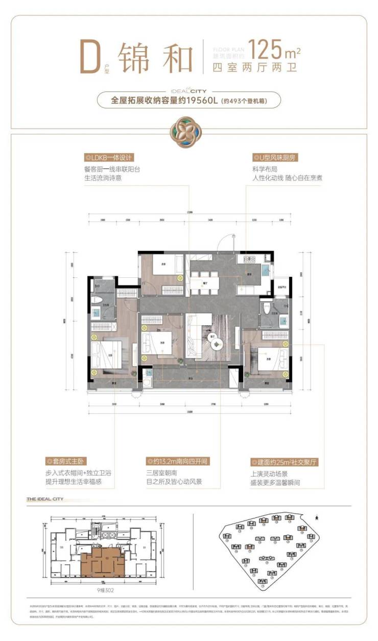 四面铝板、约1600方下沉式会所、景观泳池、豪华大门、主题架空层