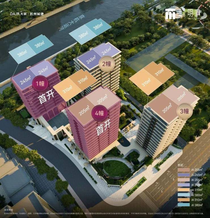 项目规划4幢12-17层小高层,主打205㎡(层高3.15米)、245㎡(层高3.3米)、300-380㎡顶跃(首层3.6米)三大奢阔户型。这是杭州市中心首个全抬板的豪宅,项目通过-1层、M层(地面层)、G层(抬升地面层)做了三级立体抬升,把首层住户最高抬升至约12米的高度。