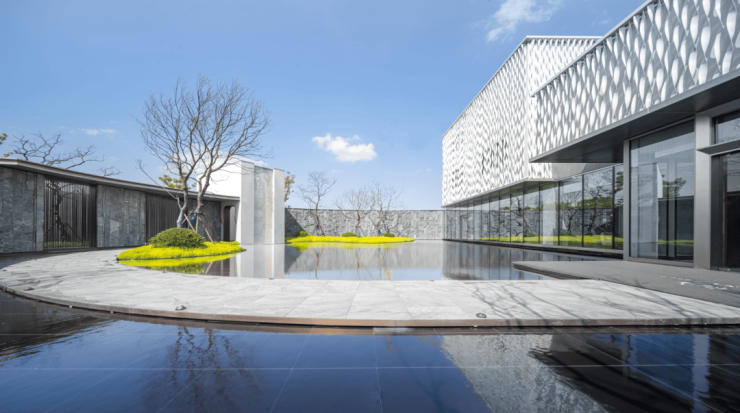 1、化繁为简、奢制现代风尚 :外立面提取抽象的“山墙”符号,实现苏式元素与现代设计手法的完美结合,并采用金属漆一体板,配以高级灰高质感色彩。