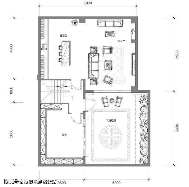 下沉式庭院丰富了空间层次,给空间带来更加丰富的视觉感和使用的可能性。
