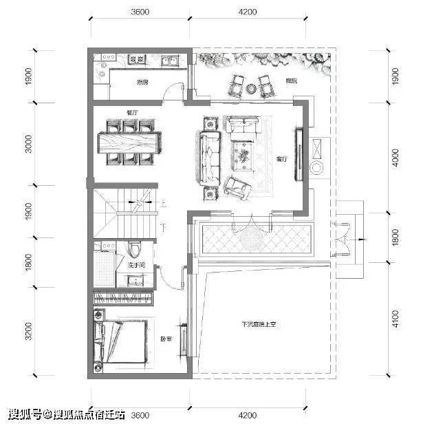 因为是下沉式庭院,这样可以保证首层地下室真正拥有大面积阳光,时刻保障干燥、通风,再做一个卧室都可以,还是全明!