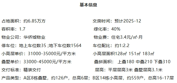 项目分为A、B两个地块开发,其中A区为8栋叠墅(高4-6层),B区为14栋小高层(高11-17层),户型产品为建面约128-310㎡。