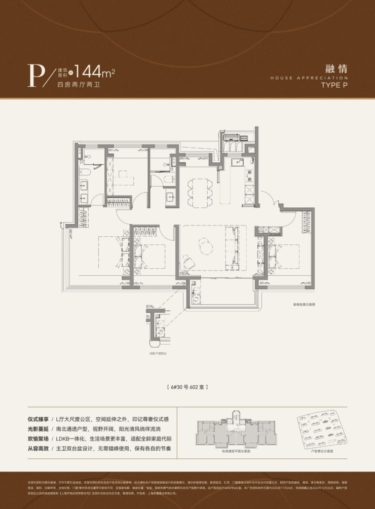 在 110 户型已有的两点之上再度升级,144 户型更加匹配三代同堂、二胎之家。