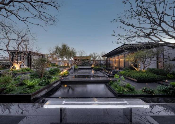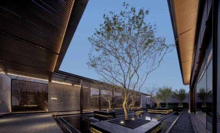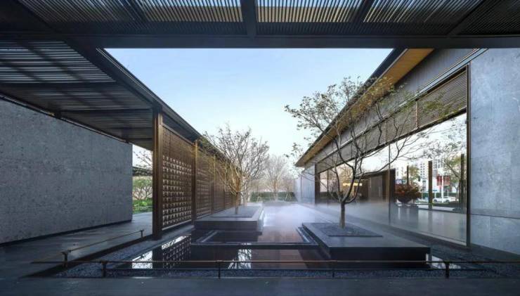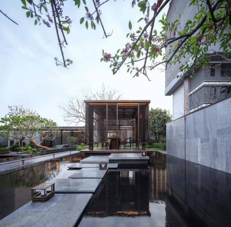 在中国传统文化中,水对于住宅而言十分重要,礼仪空间结合水景突出仪式感,承载东方的传统文化精神。