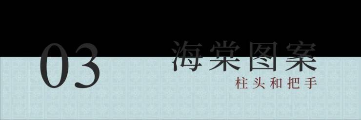 “棠”与“堂”谐音,玉堂传说是神仙居住的场所,有“玉堂富贵”和“满堂平安”吉祥寓意,我们一共打造了36个海棠纹柱头和把手。