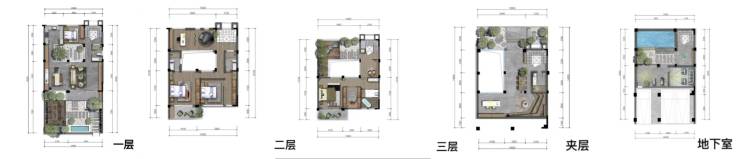 项目得房率达150%以上,236平实得390平, 383平实得700平;整体南北朝向,南北通透;采用“3+2”布局,地上3层,地下可幻变两层;户户私享前后三花园(60-150平花园)。