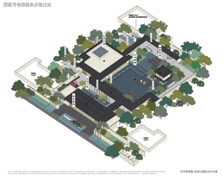 溯源《西园雅集图》蓝本,汲取江南园林构园手笔,以东方人文礼序空间,巧妙地将东方园林的院落、巷道、亭台相融合,匠呈山水隐园——约1000㎡山水园林景观,以及礼仪门堂、礼序厅堂、疏影轩堂,再现江南游园意境,打造具有东方精神符号的昆山人文会客厅。