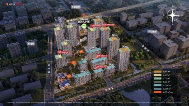 而云耀之城位于地铁4号线西湖大学站上盖,由万科和杭铁联合打造,是杭州主城内目前唯一可售的TOD新盘。
