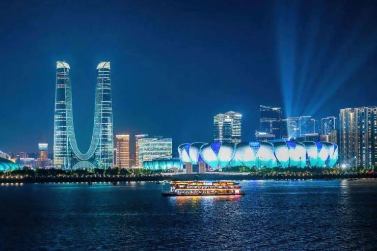如果你去看过这几天钱塘江边的灯光秀,你就会发现,以前,我们看的是钱江新城,看的是日月同辉,看的是北岸,今天,我们看的是莲花碗,看的是亚运村,看的是杭州之门,看的是南岸。