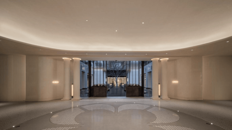 海上·清和玺定制地上地下双归家系统。地上奢定社区风雨连廊,总长约500米串联住宅楼栋,打造无风雨归家系统。实现诗人笔下的“户外风雨连绵,廊下月华如水”的生活情景体验;地下归家系统引入招商蛇口上海领创中央车站场域设计,“中央车站”,作为地下的驱车通道,本身也是整个空间的枢纽平台,连通项目会所、地下庭院,高效抵达的同时,保证了业主的私密性,营造独一份的尊崇体验。